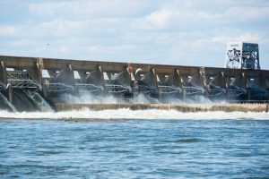 Historic rains across the state prompted Santee Cooper to start spilling through six primary gates on Sunday, Oct. 4, and spilling reached a peak of 75,000 cfs on Wednesday, Oct. 7. Santee Cooperโs 40 miles of dams and dikes have remained secure throughout.