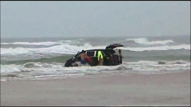 Wilkerson then exited the minivan and left her children inside the vehicle. The two older children were pulled to safety first and then, after they reported that their younger sister was still in the vehicle, the toddler was extracted through the minivan’s rear hatch. According to a witness, during the rescue one of the beach safety officers had to fend off Wilkerson, who was grabbing at the officer and trying to stop him from entering the vehicle.