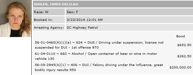 JAMESTOWN, S.C.—A judge has set bond for Jamie Shuler, 30, at $200,914 stemming from a fatal wreck that resulted in the tragic death of her father, James Shuler, 67.