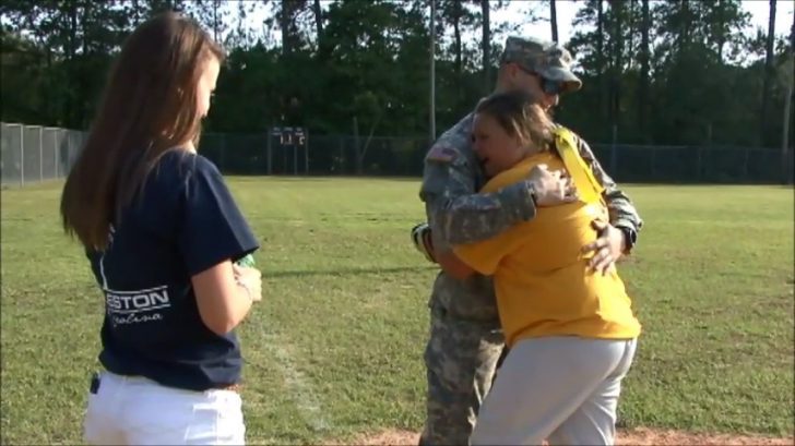 โSheโs been sending letters to him for the past year.ย She talks about him all the time.ย She loves the fact that heโs serving our country,โ said Stephanie Yates, the girlโs mother.ย โSo me and my sister thought it would be a really neat idea, she loves softball, to bring him out here and surprise her.โ