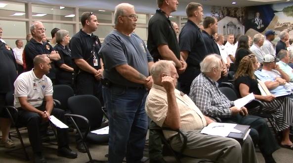 Many volunteer firefighters stood to show their support for those speaking on their behalf.