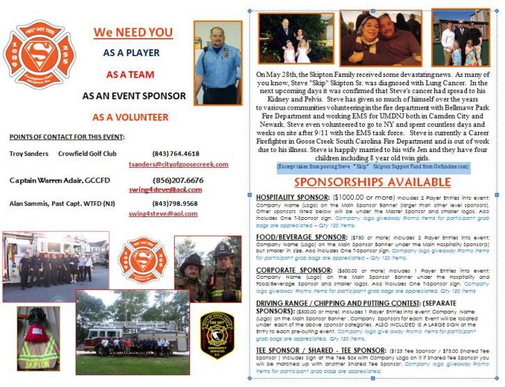 On October 27th, the very first ‘Take A Swing For Skip’ will take place at the Crowfield Golf Club in Goose Creek.