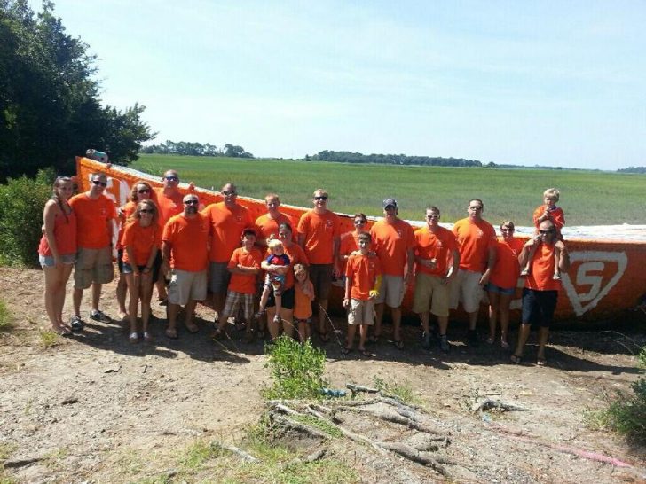 Lowes was kind enough to donate the paint. The boat is now orange with the message “we got this” painted in white.