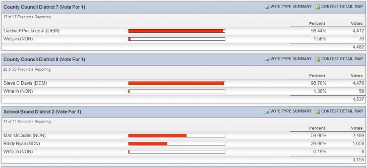 BERKELEY COUNTY, S.C.–According to the South Carolina State Election Commission, out of the 104,441 registered voters in Berkeley County nearly 42 percent (43,665) cast their ballots in this year’s General Election. Below are the results for all 72 precincts. The results will officially be certified on Friday morning.