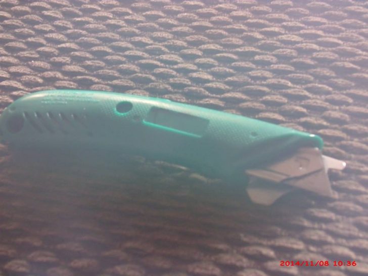 “It (the box cutter) was wrapped up in his work shirt and in the bottom of his book bag,” she said. “The blade is less than two inches. When asked, he pulled it out of his book bag and handed it to him.”