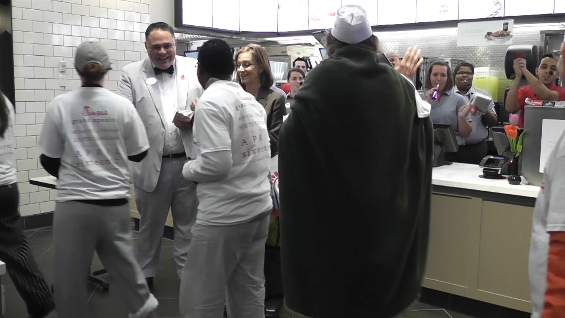 The restaurant chain’s ‘First 100’ event awarded more than $32,000 in free food. Justin Clark, the restaurant’s operator and owner, personally handed guests a digital card loaded with a one-year supply of free Chick-Fil-A meals.
