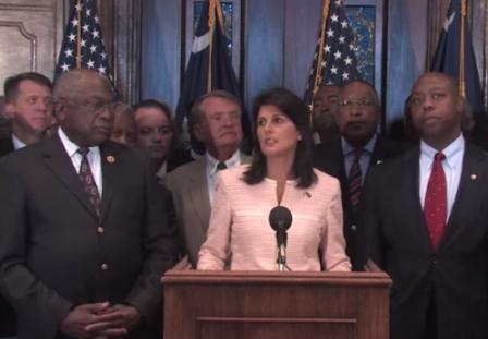 “We respect freedom of expression, and for those who wish to show their respect for the flag on their private property, no one will stand in your way,” Haley stated during a press conference. “But the Statehouse is different. And the events of the past week call upon all of us to look at this in a different way.”