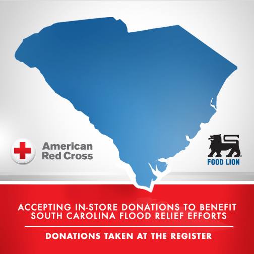 Food Lion has made a $25,000 donation to the American Red Cross and is partnering with its customers to accept register donations to support Red Cross disaster relief in the wake of these floods and other crises across the country.