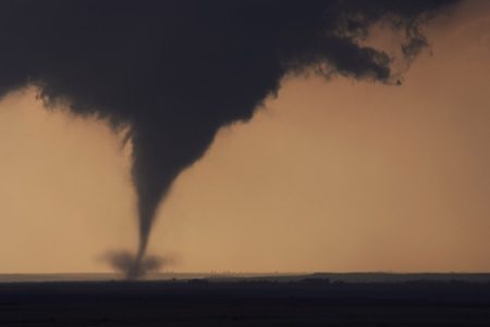 Farther north along the tornado’s path, vegetation revealed a swirling, convergent damage signature produced by the weak tornadic circulation.