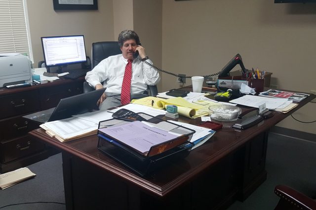Pictured: Chief Rick Ollic sits at his desk inside the Moncks Corner Police Department