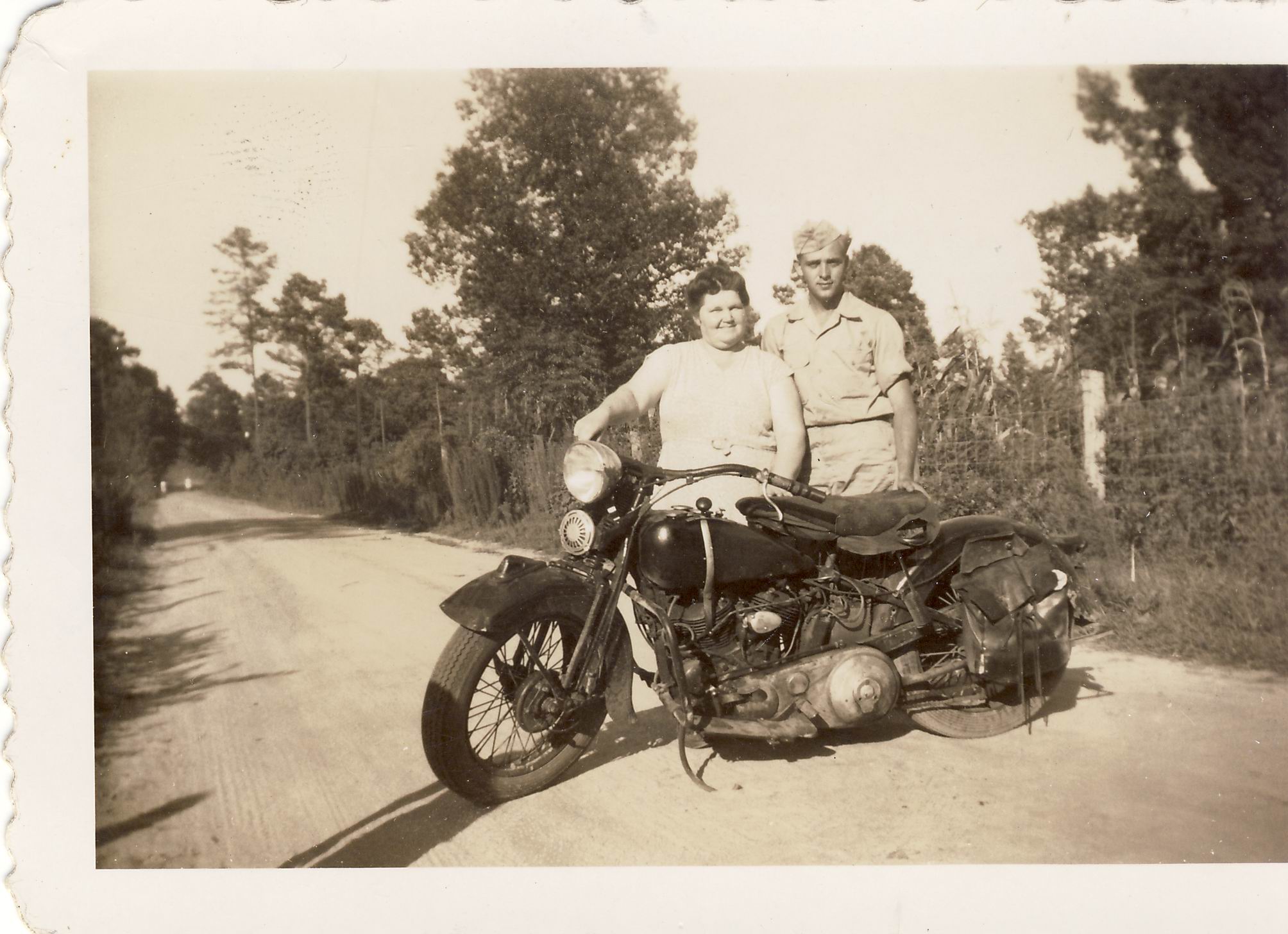 With their 1936 Harley in the forefront, this couple posed for the camera on Hard Pinch Road in Cordesville nearly 80 years ago. The image was taken during WWII.