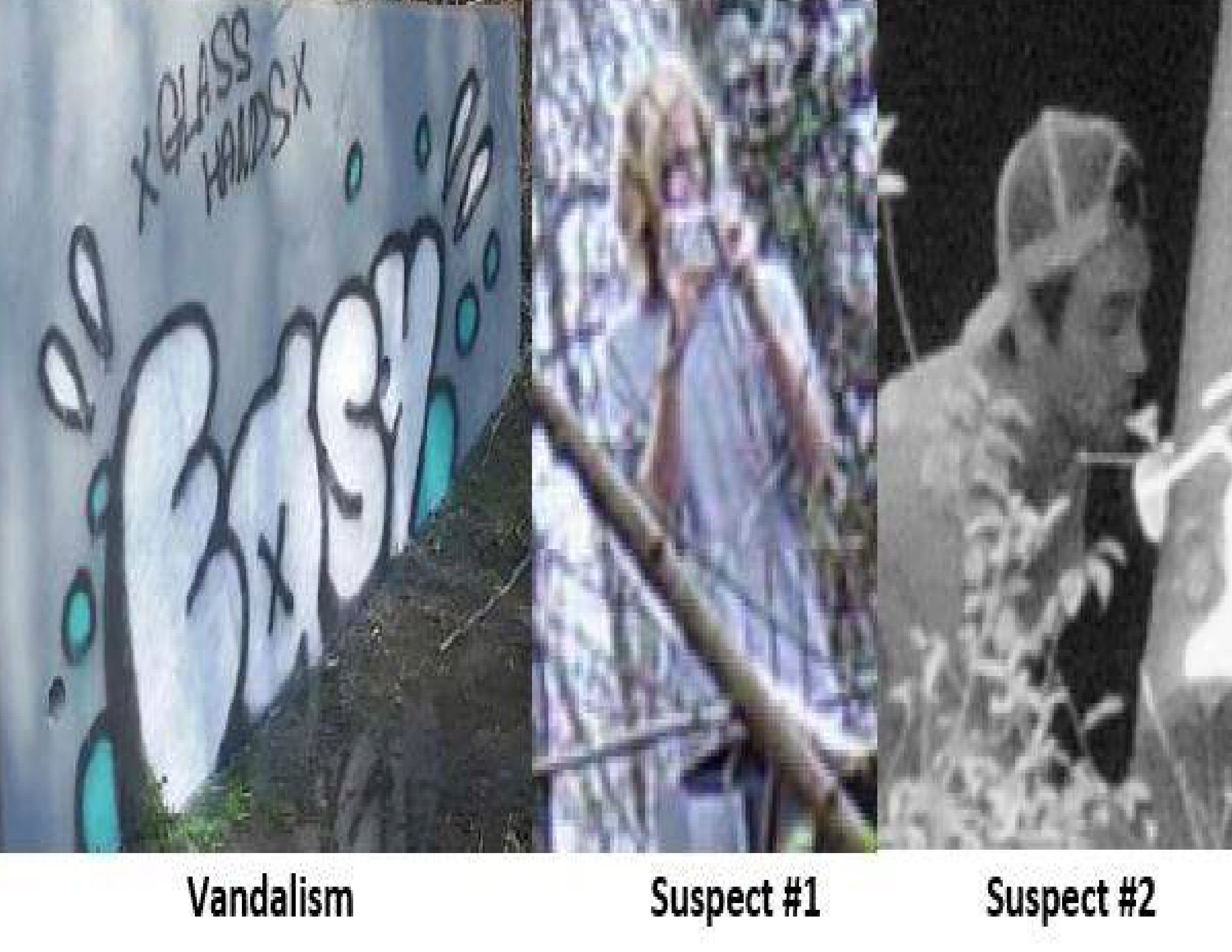 According to officers, the two men pictured vandalized the bridge structure under the roadway on Adler Dr.