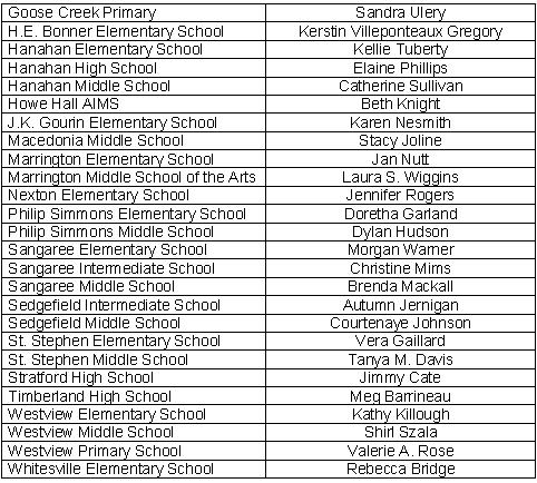 BERKELEY COUNTY, S.C.–Berkeley County School District (BCSD) announces its 2017 Teachers of the Year. These educators will be considered for 2017 District Teacher of the Year.