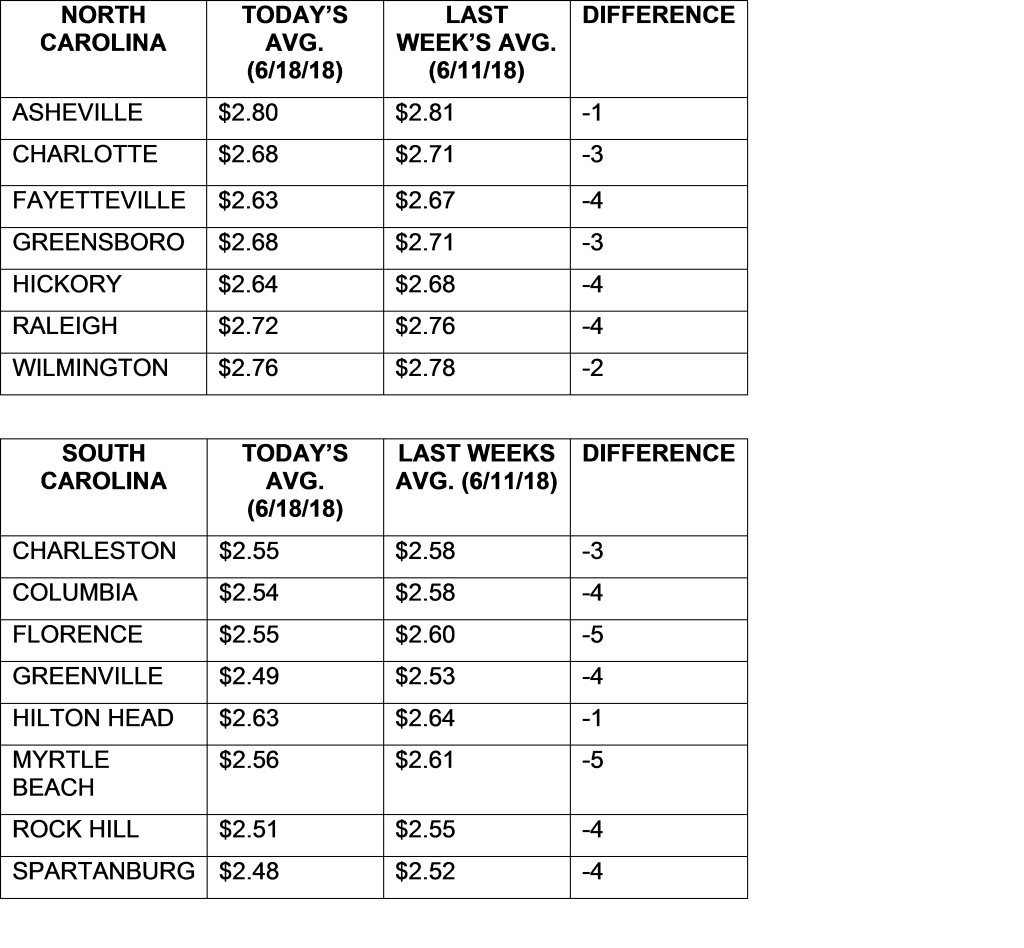 “If demand continues to strengthen and inventories decrease in the weeks ahead, motorists can expect gas prices do a reversal and start to increase again,” said Tiffany Wright, AAA Carolinas Spokesperson. “AAA expects the national gas price average to range between $2.85 and $3.05 through Labor Day, likely seeing the summer’s highest prices in June.”