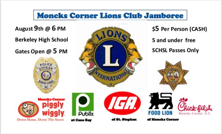 “I am excited to host this jamboree and appreciate all of the Lions Club’s planning and hard work to bring an event of this kind to Berkeley County,” said Steele. “The gate proceeds will be reinvested into our local communities and into each participating teams’ program so we are teaching our kids the importance of giving back. This is also the first opportunity for fans to see their teams this season, and I am confident that they will not be disappointed.”