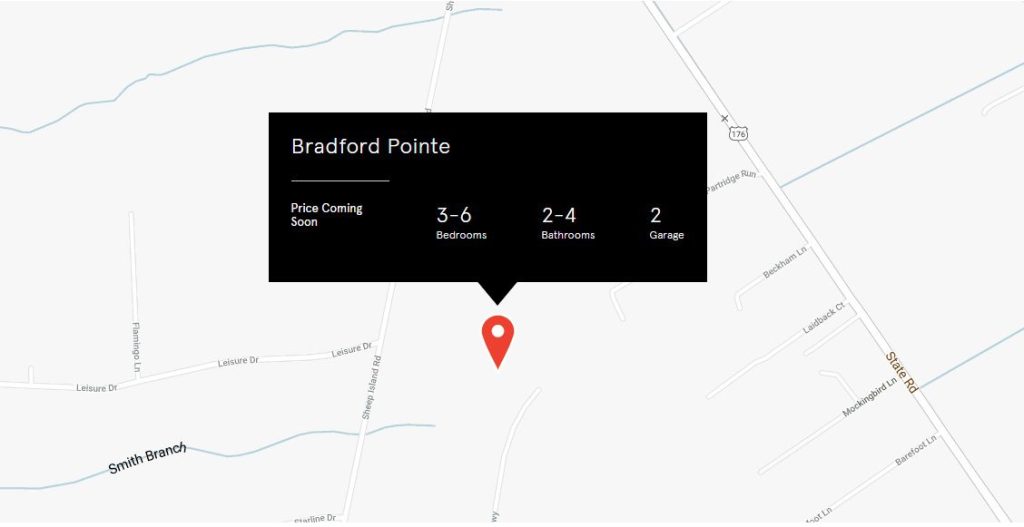 “Welcome to Summerville’s newest Centex community, Bradford Pointe. Here, you’ll enjoy a private amenity that will include a swimming pool and children’s play area as well as convenient access to just about everything including great schools for all grade levels, shopping, dining and recreation,” the website for the new development reads.