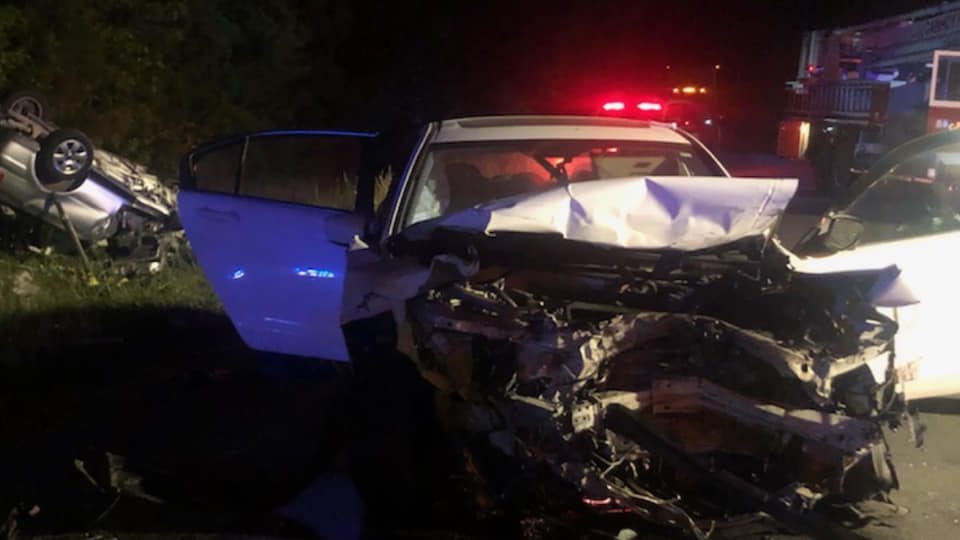 Firefighters say that when they responded to the scene, they found two vehicles with heavy damage, including one that was overturned.