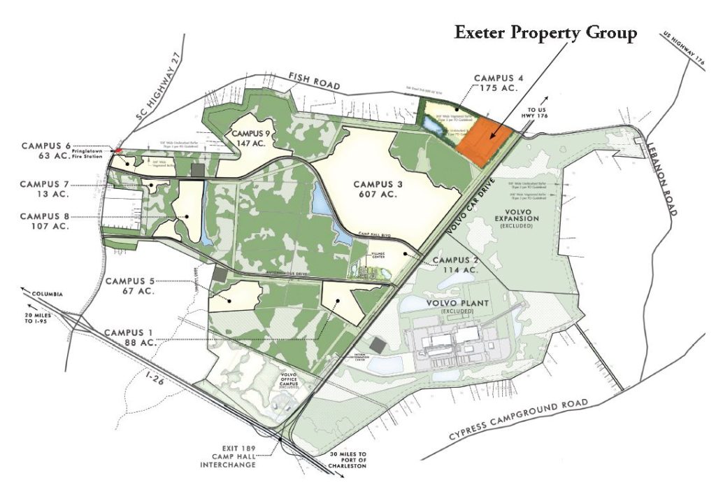“We are excited to welcome Exeter, a first-class developer, to Camp Hall. This sale marks a major milestone at Camp Hall since Volvo Car USA launched their new auto manufacturing plant last summer,” said Pamela Williams, Santee Cooper senior vice president and CFO. “In addition, the sale signals the progression of Camp Hall as a world-class commerce park designed for the needs of the next generation of industry. It also advances our mission of improving the lives of all South Carolinians and will bring economic benefits to South Carolina and the surrounding community.”