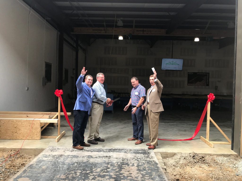 Long time employees joined company leaders to cut the ribbon. They also ceremonially built the inaugural truss in their new building. Then, everyone signed the truss.