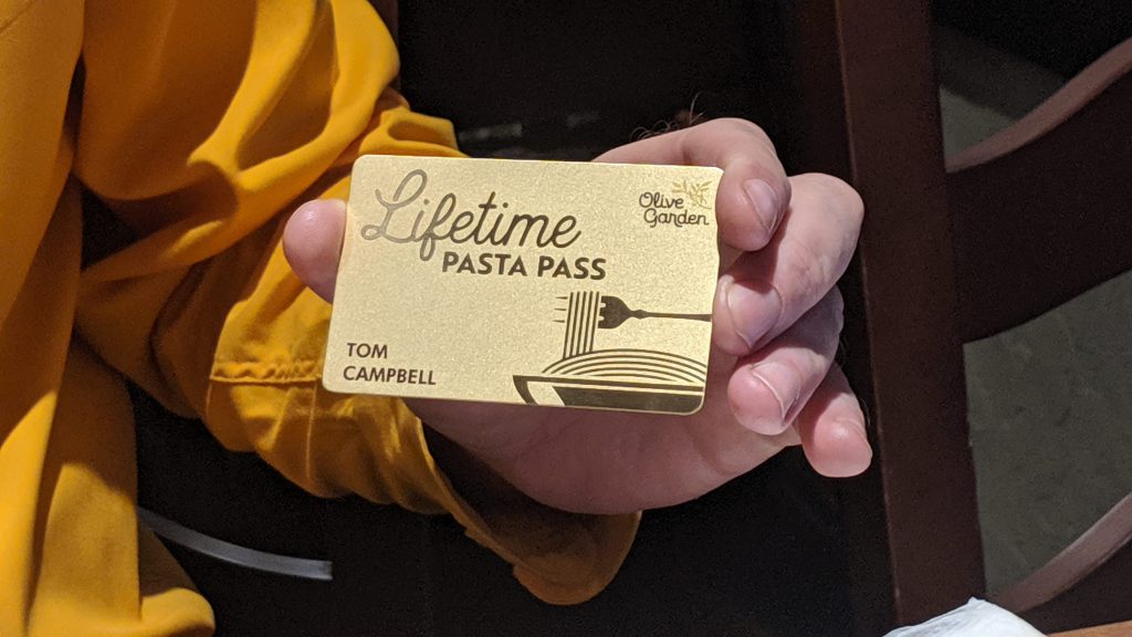 “I want to be around a long time to enjoy the pass. So as much as I am tempted to go to Olive Garden every single day, I’m going to try to limit myself to just twice a week. I don’t want to die of a heart attack from eating too much pasta,” laughed Campbell. “I can’t enjoy my pasta pass for many years to come if I’m dead.”