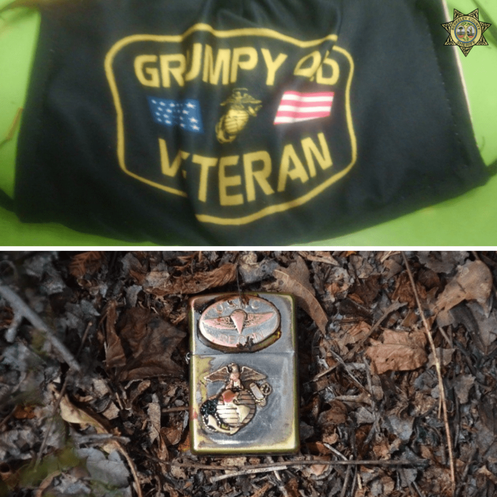 The man was found to be in possession of a U.S. Marine Corps hat, a “USMC Recon” lighter and a “Grumpy Old Veteran” face mask.