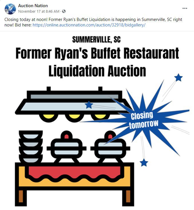 It’s not clear if the chain will open another location in the Lowcountry; however, the Summerville restaurant is not the first to shut down in the Charleston area. Ryan’s previously closed its West Ashley restaurant in Feb. 2016, one of 74 locations that suddenly ceased operations across the United States at the time.
