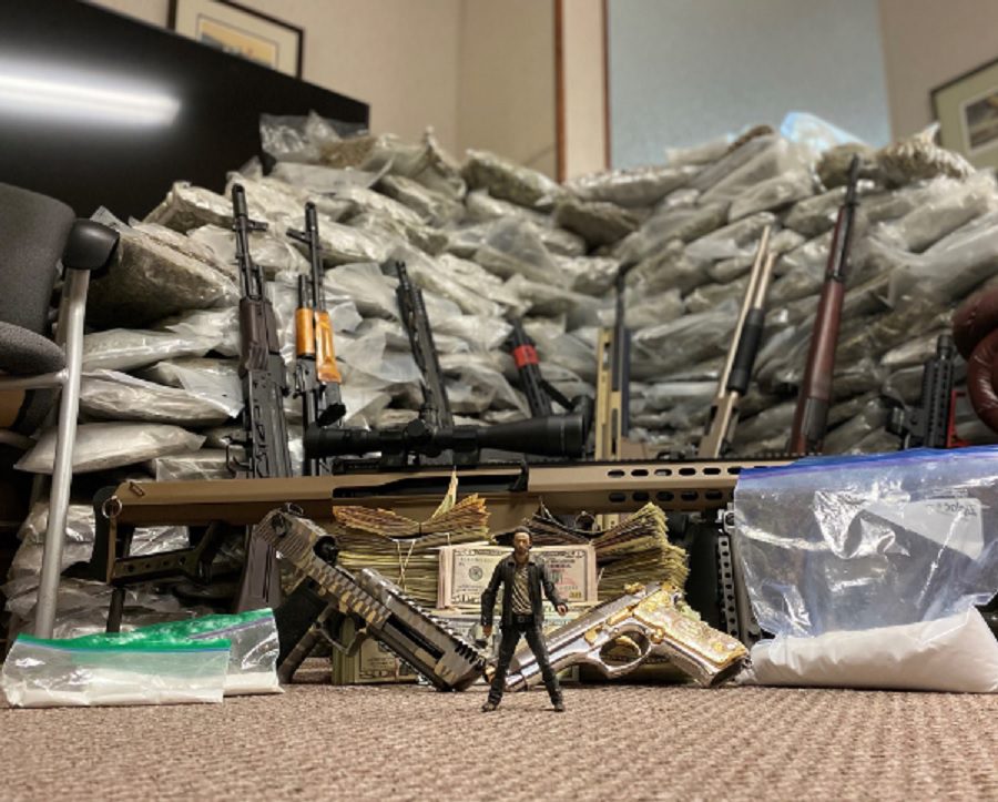 Detectives said they seized approximately 200-pounds of presumptive marijuana, 90 grams of presumptive psilocybin, 630 grams of suspected narcotics in powder form, more than $20,000 in cash, a money counter and a cache of weapons including a Barret .50 caliber sniper rifle and other rifles.