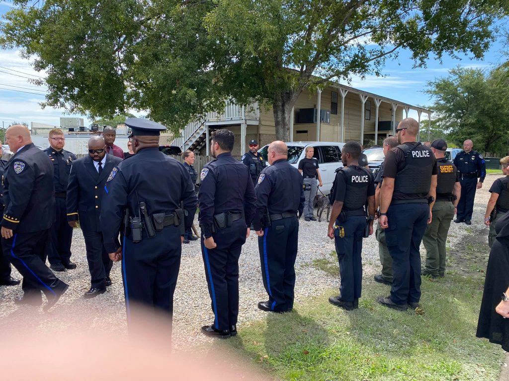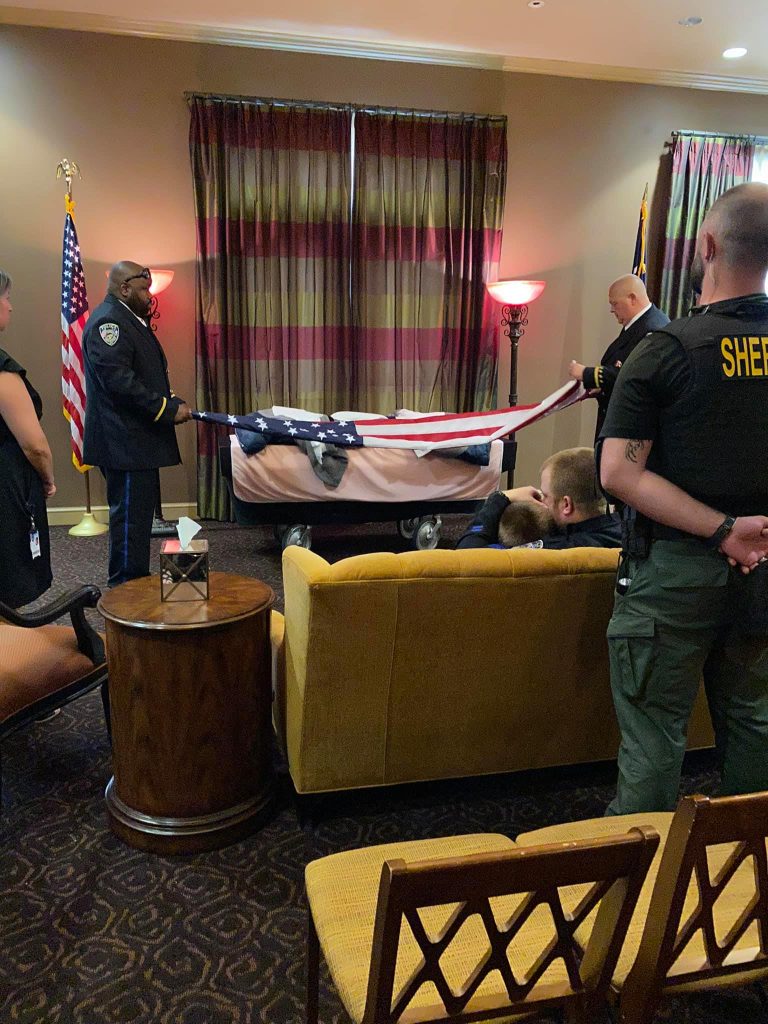 With her body draped in the American flag, officers gave one last salute as her remains were carried into the funeral home for final goodbyes. K9 Jasmin was clearly loved, valued and respected.