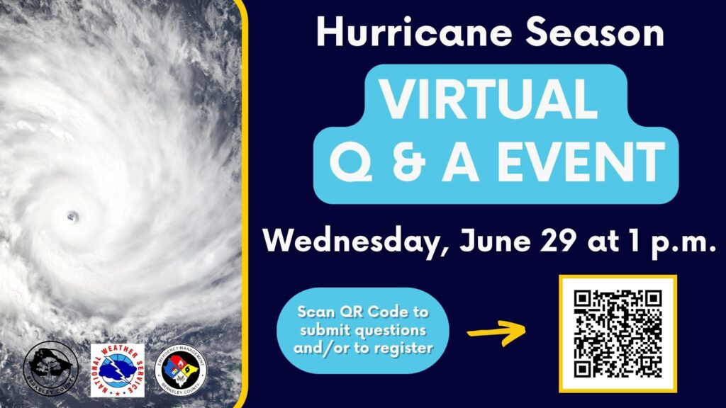 Join Berkeley County Emergency Management and the National Weather Service on Wednesday, June 29 at 1 p.m. for a virtual Q&A event.