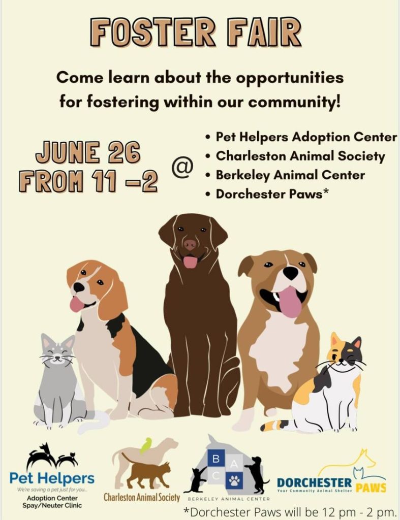 If you answered “yes,” the Berkeley Animal Center will host a foster fair on Sunday, June 26 from 11 a.m. – 2 p.m. at the Hanahan Library, which is located at 126 Old Murray Dr. in Hanahan.