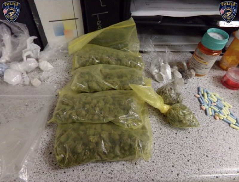 During the traffic stop, 135 grams of marijuana, 5.48 grams of fentanyl, 9.23 grams of methamphetamines, 14.09 grams of cocaine, 2.58 grams of crack cocaine, 65 doses of Xanax, 206 doses of oxycodone, and a 9 mm pistol were located in the vehicle, according to police.
