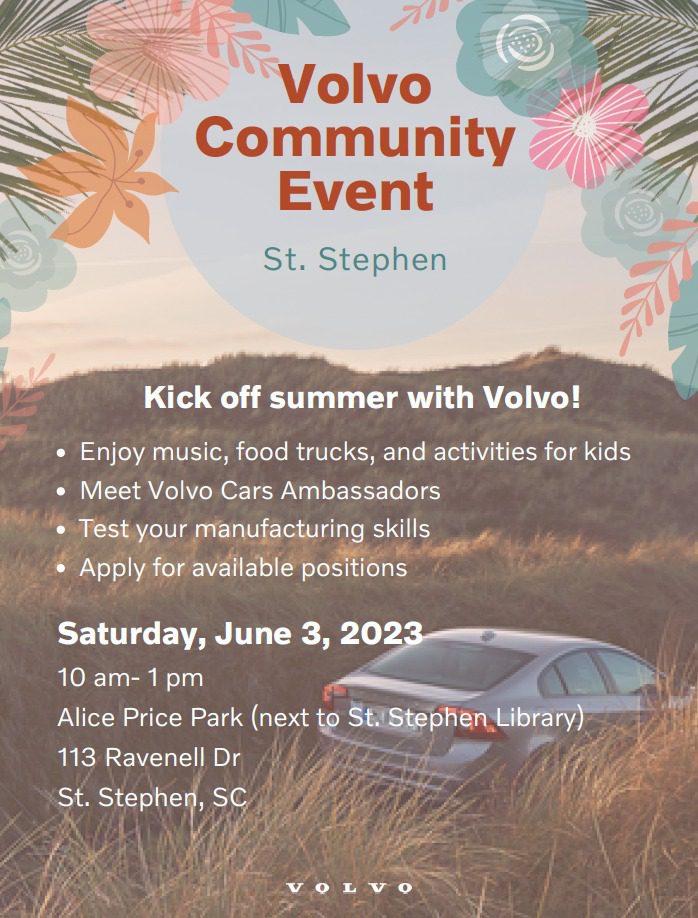 ST. STEPHEN, S.C. – Town officials recently announced that Volvo has plans to kick off the summer in St. Stephen this Saturday with family-friendly activities and job-hiring opportunities.
