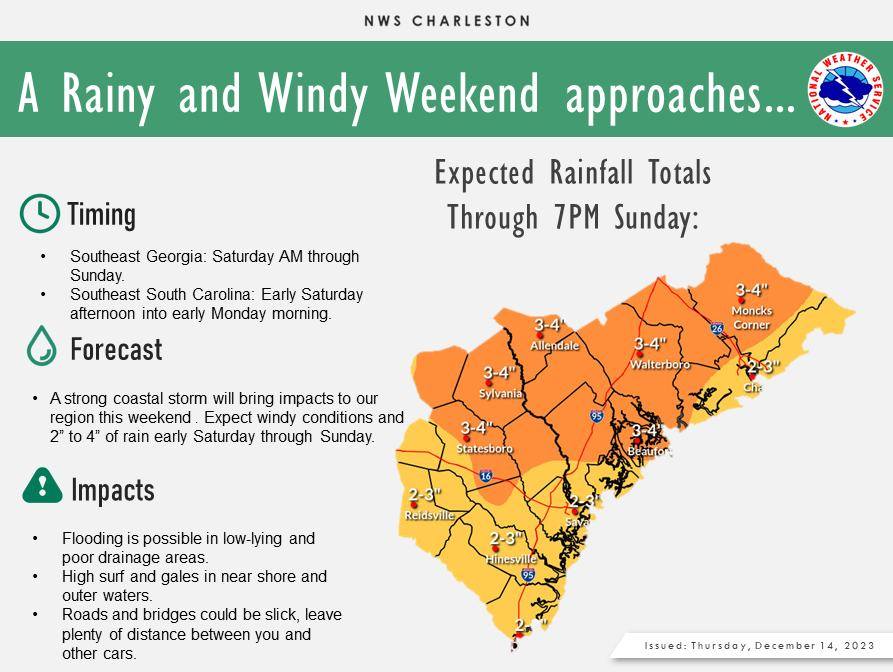 “Berkeley County Emergency Management is monitoring the weather forecast, which shows impacts beginning Saturday afternoon into Sunday. Areas closer to the coast could experience more sustained wind and higher-level gusts,” the county posted to its official Facebook page Friday.