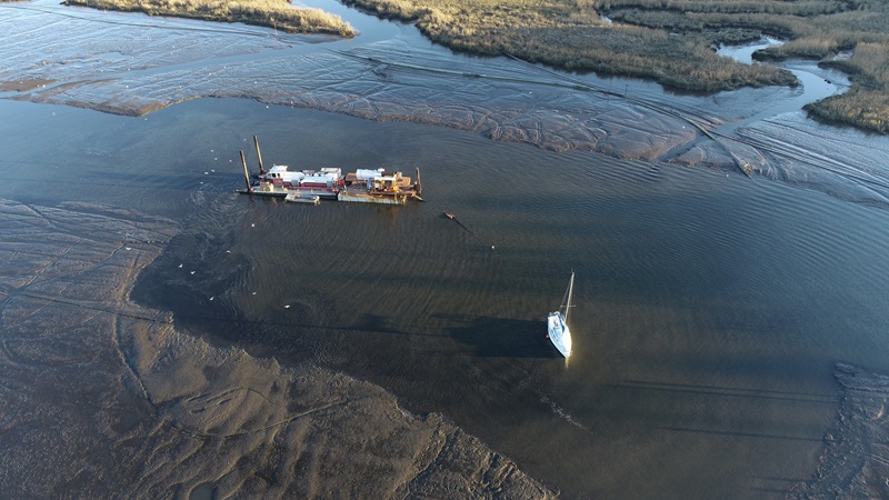 The sediment is being delivered to the Clouter Creek South Cell disposal site in North Charleston. Crews are dredging down eight feet and 200 feet across at low tide.
