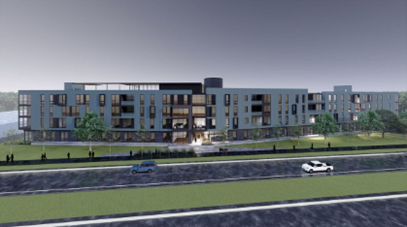 The plan calls for 111 rental units comprised of large 1-2 bedroom and studio apartments as well as a 1,800 square-foot lobby cafe with floor-to-ceiling windows. A rooftop penthouse will include a meeting space and a deck to view state-of-the-art performances at the city’s future amphitheater, according to Jeffrey Roberts, managing director for JJR Development.