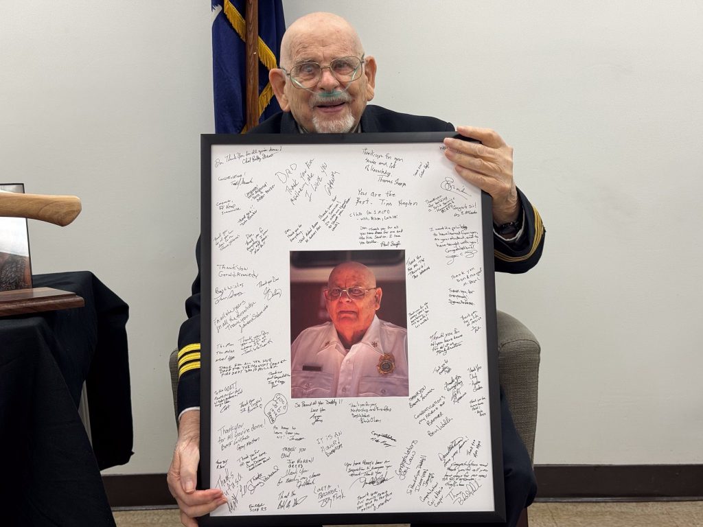 The standing ovation said it all — this 90-year-old hero may have put out fires, but on Saturday, he lit up the room.
