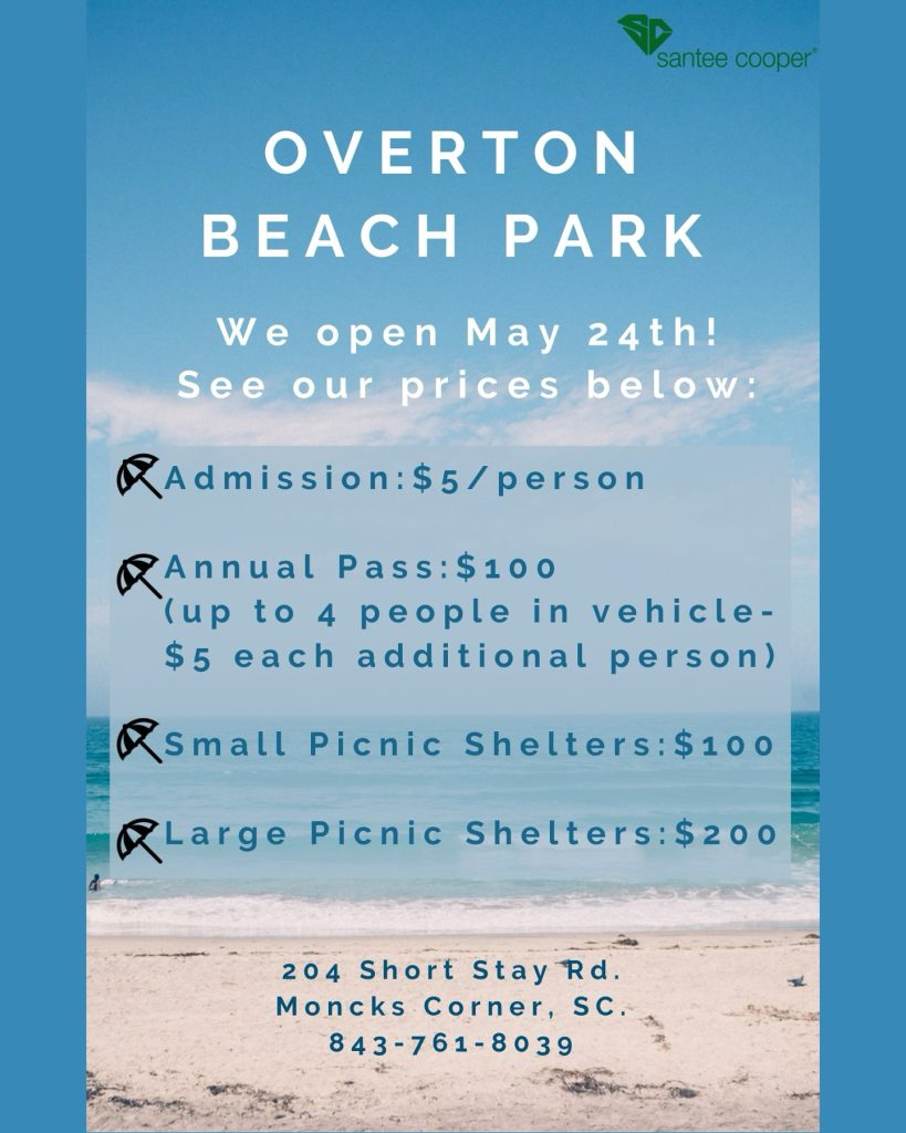BERKELEY COUNTY, S.C. – Overton Beach Park will officially reopen for the summer season on Saturday, May 24, with some key updates—and a new price tag.