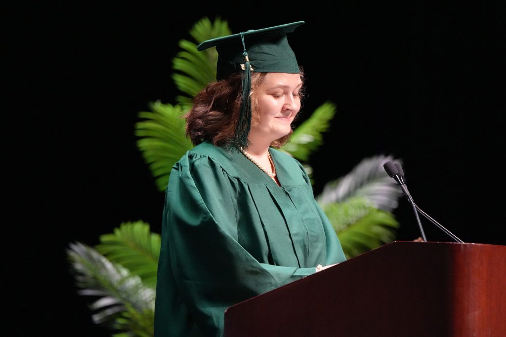 Robbins’ story resonated so deeply that she was invited to be the featured speaker at the Adult Education graduation ceremony in May. Nervous but determined, she took the stage and shared the lessons she learned: