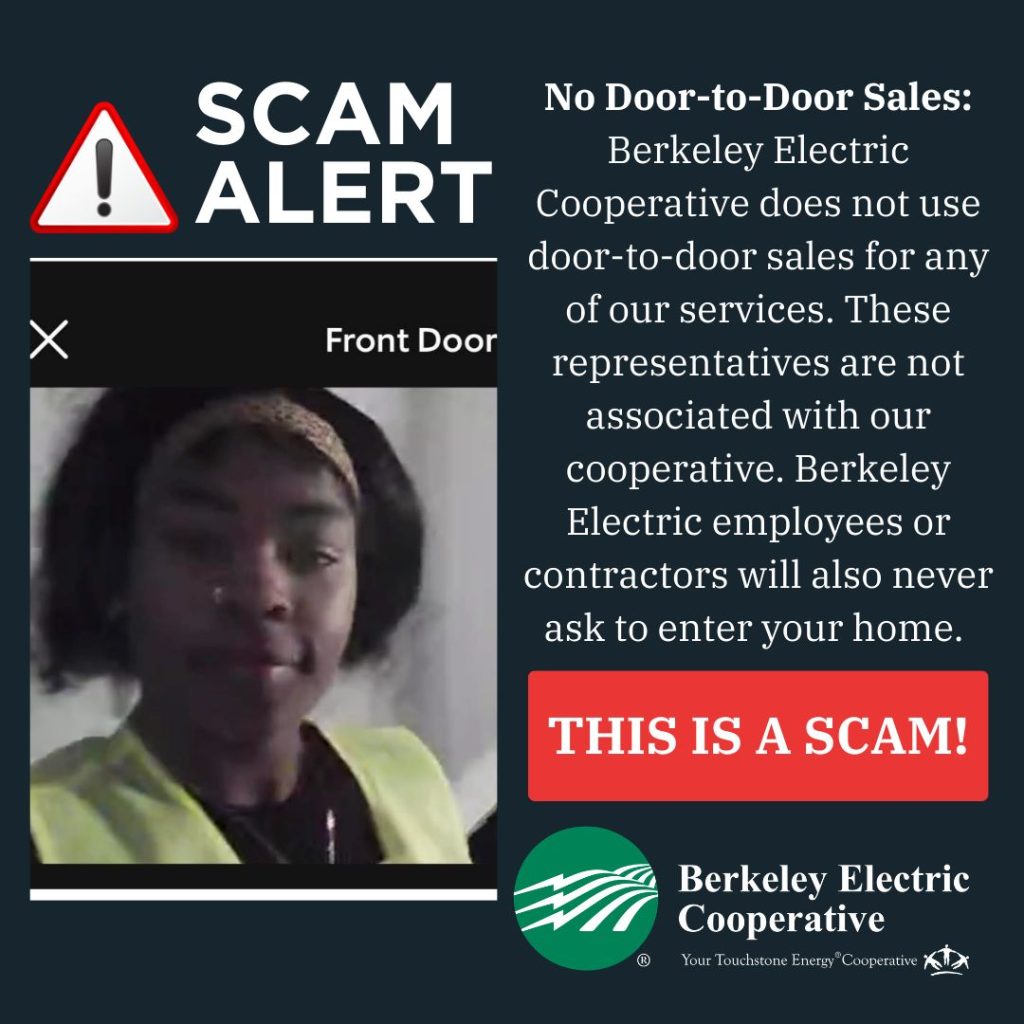 In a public alert shared on social media, Berkeley Electric made it clear that it does not conduct door-to-door sales for its services and that legitimate employees or contractors will never ask to enter a customerโs home.