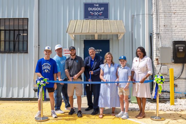 Town leaders and community members gathered Wednesday afternoon for a ribbon-cutting ceremony celebrating the grand opening of The Dugout, a locally owned baseball and softball training facility located at 211 East Main Street.