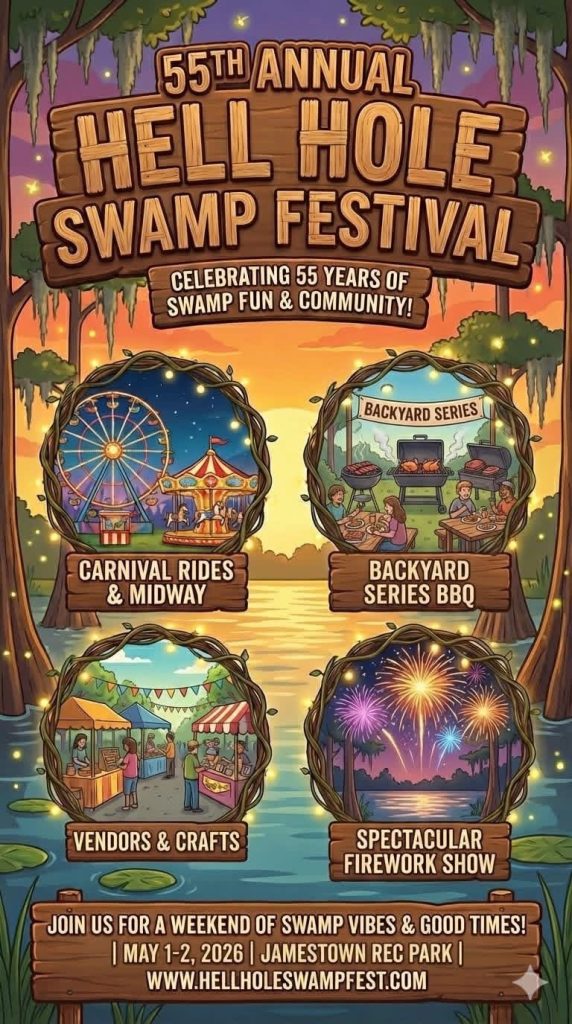 The legendary Hell Hole Swamp Festival is making its return in 2026, promising a few days of what organizers proudly call “swampy fun” in the rural Lowcountry. To get there, simply program your GPS to 116 Steelshed Lane in Jamestown. You can’t miss it.